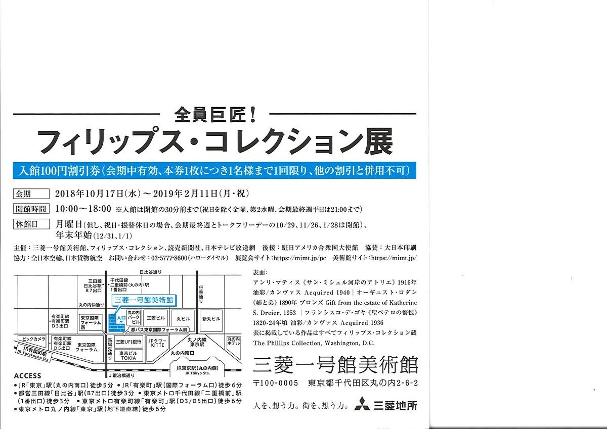 三菱一号館美術館 全員巨匠!フィリップス・コレクション展(2018/10/29)
