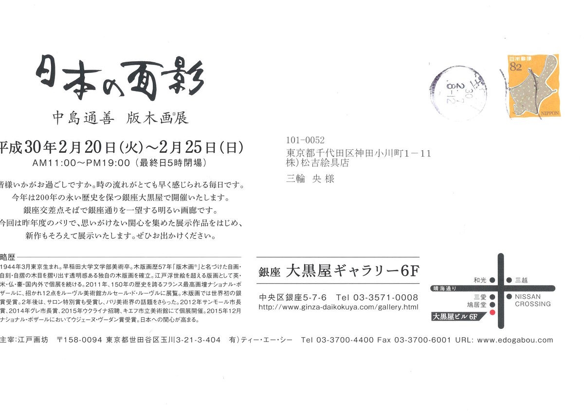 日本の面影 中島通善 版木画展 開催のご案内(2018/02/08)
