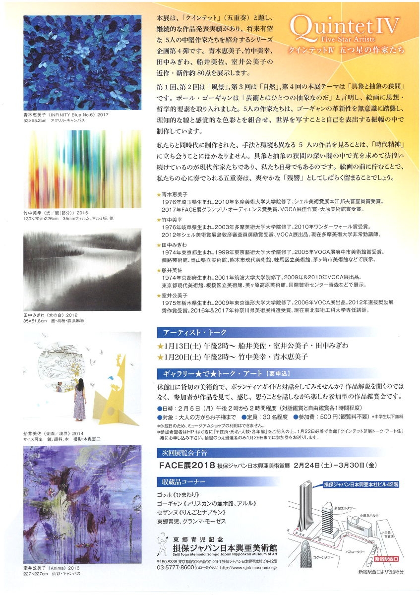 クインテットⅣ 五つ星の作家たち 開催のご案内(2018/01/12)