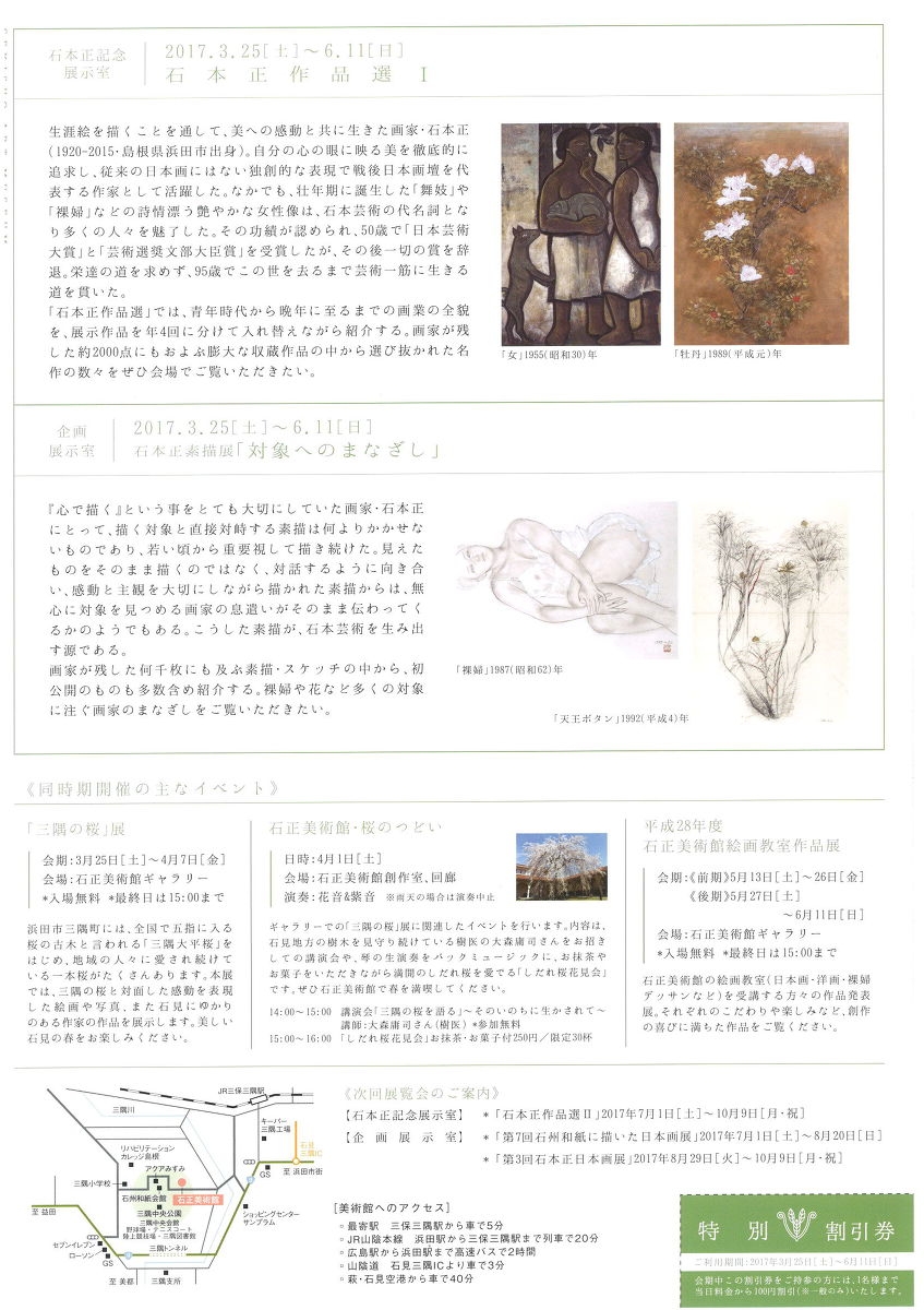 石本正作品選Ⅰ、 石本正素描展 対象へのまなざし 開催のご案内(2017/03/27)