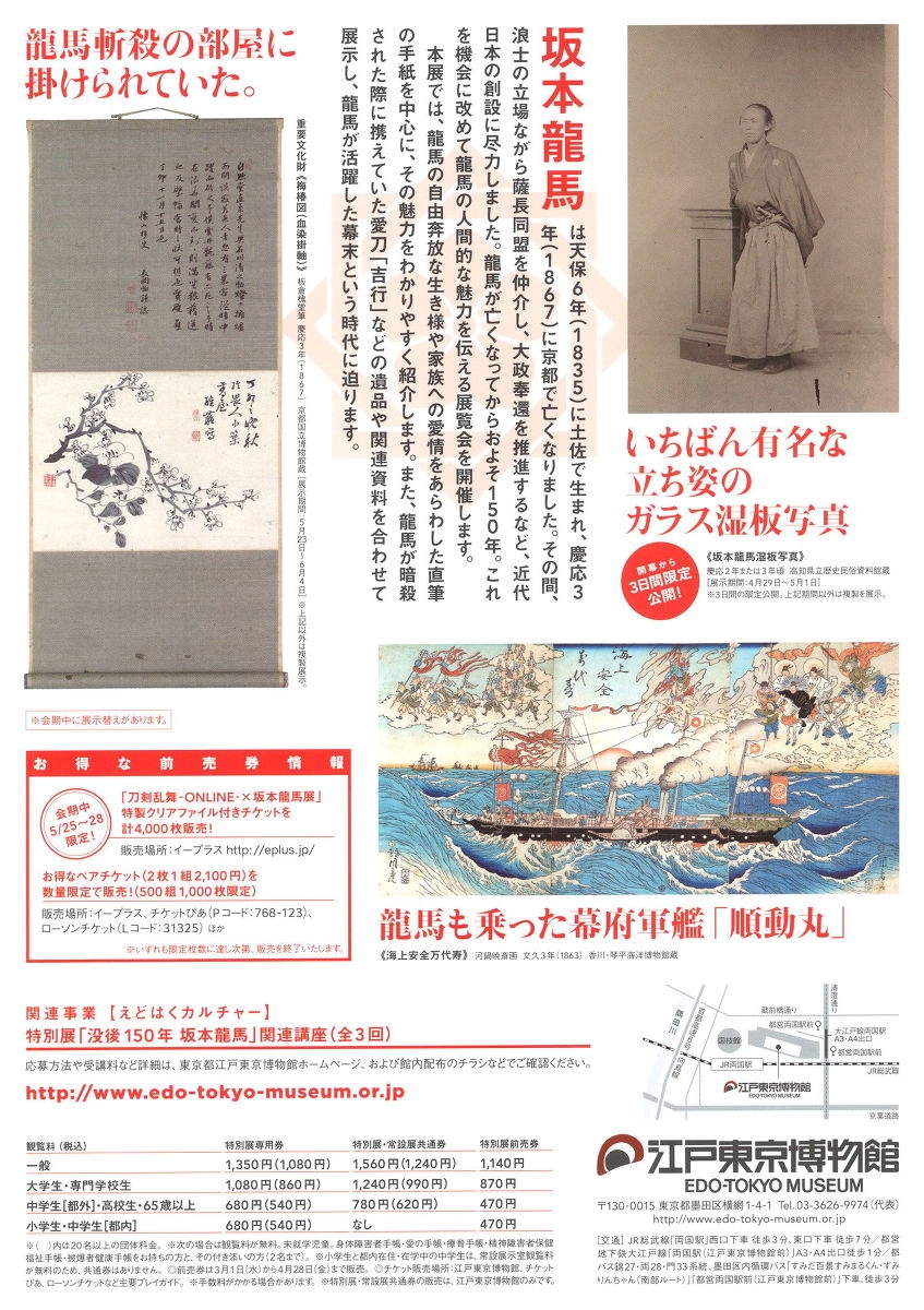 読売新聞東京本社様より、特別展 「没後150年 坂本龍馬」 開催のご案内をいただきました。