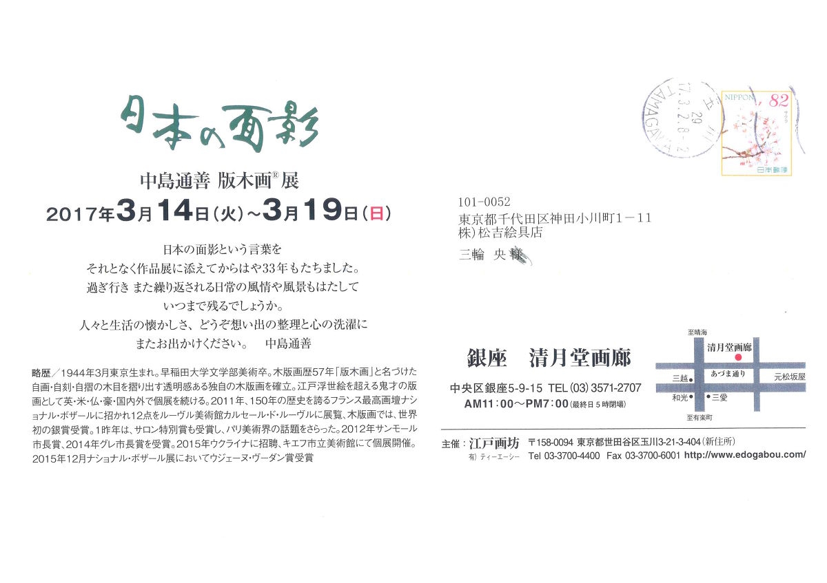 中島通善 版木画展 日本の面影 開催のご案内(2017/03/03)