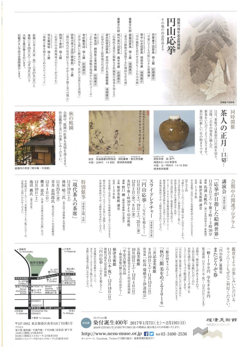 根津美術館 特別展 円山応挙 「写生」を超えて のご案内(2016/10/28)