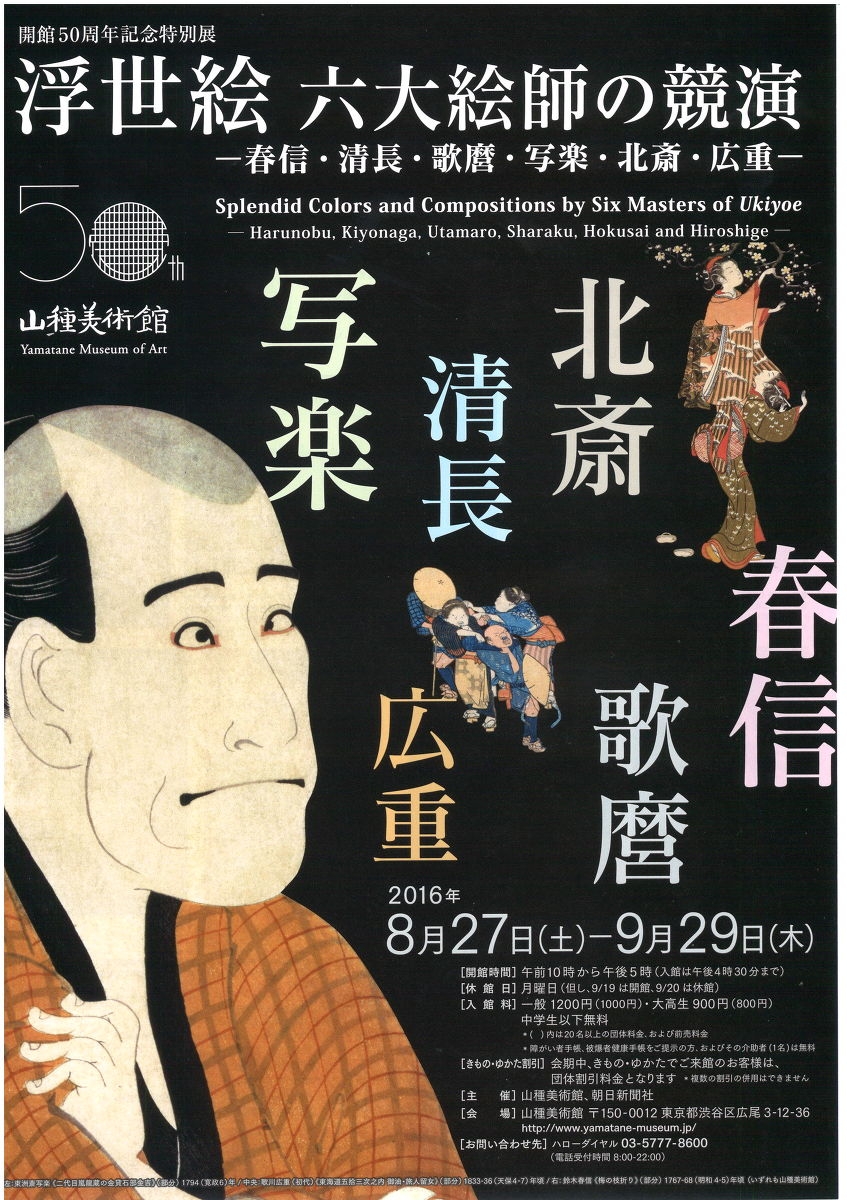 山種美術館 特別展 浮世絵 六大絵師の競演 のご案内(2016/08/17)