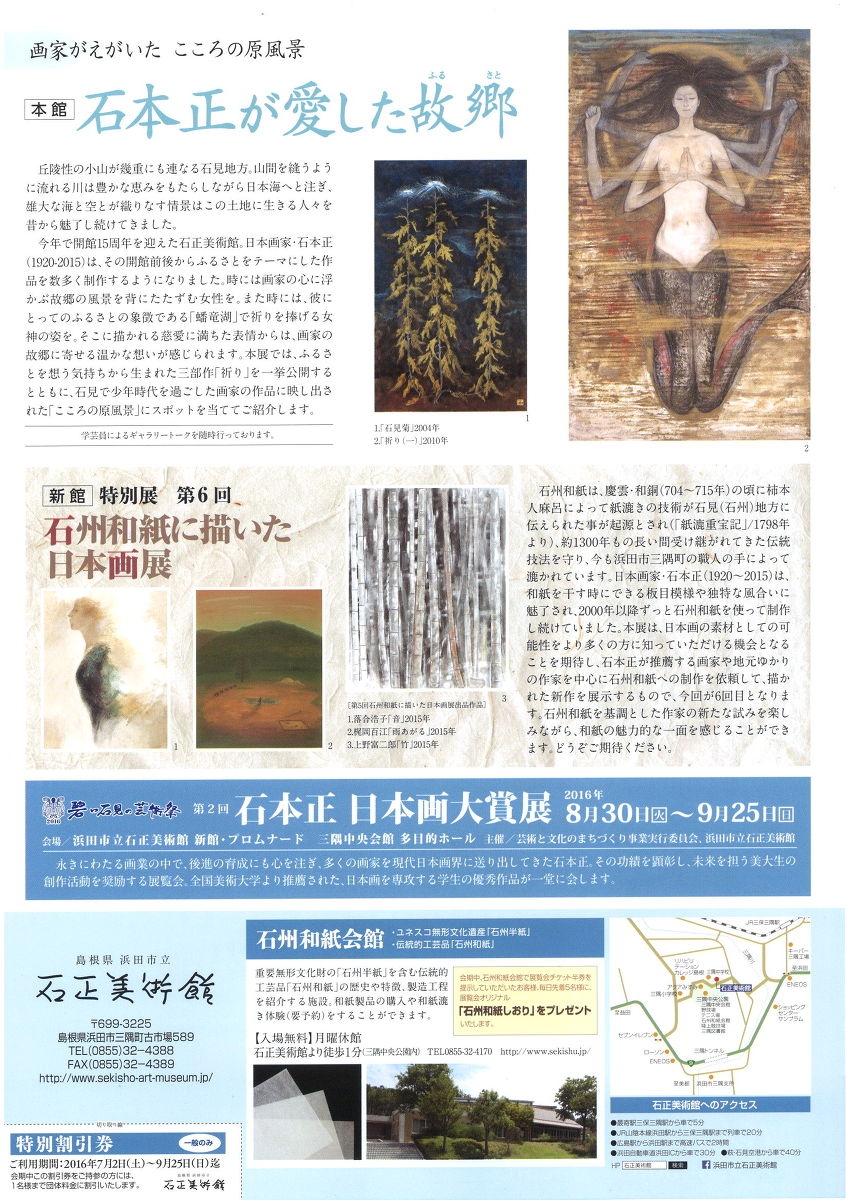 島根県 浜田市立 石正美術館 様より、[本館] 企画展 「石本正が愛した故郷」 2016年7月2日(土)?9月25日(日)