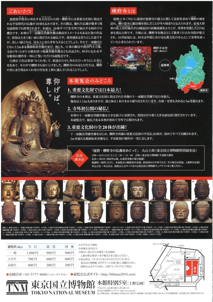 特別展 平安の秘仏 滋賀・檪野寺の大観音とみほとけたちのご案内(2016/09/01)