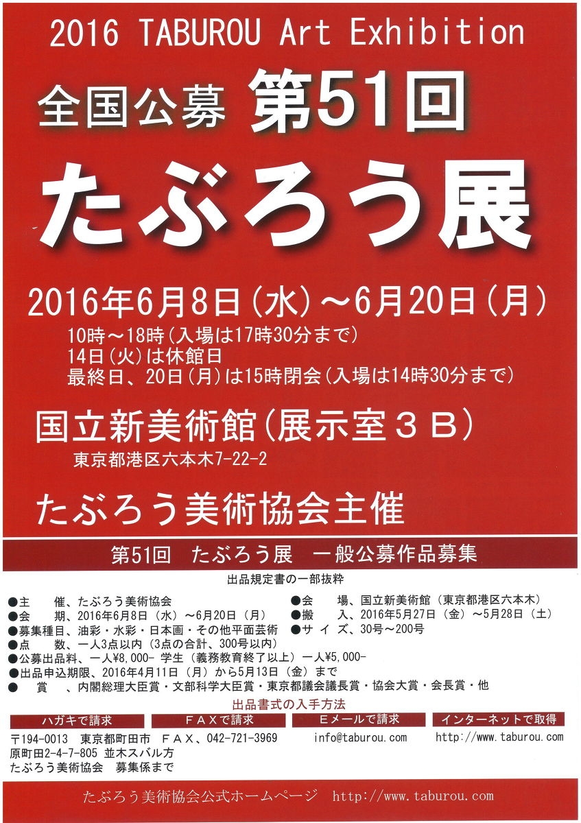 全国公募 第51回 たぶろう展 のご案内(2016/06/01)