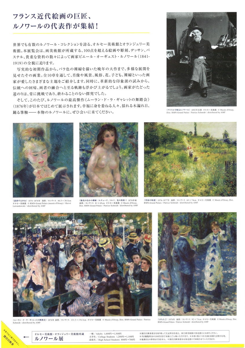 オルセー美術館・オランジュリー美術館所蔵 ルノワール展 開催のご案内をいただきました。