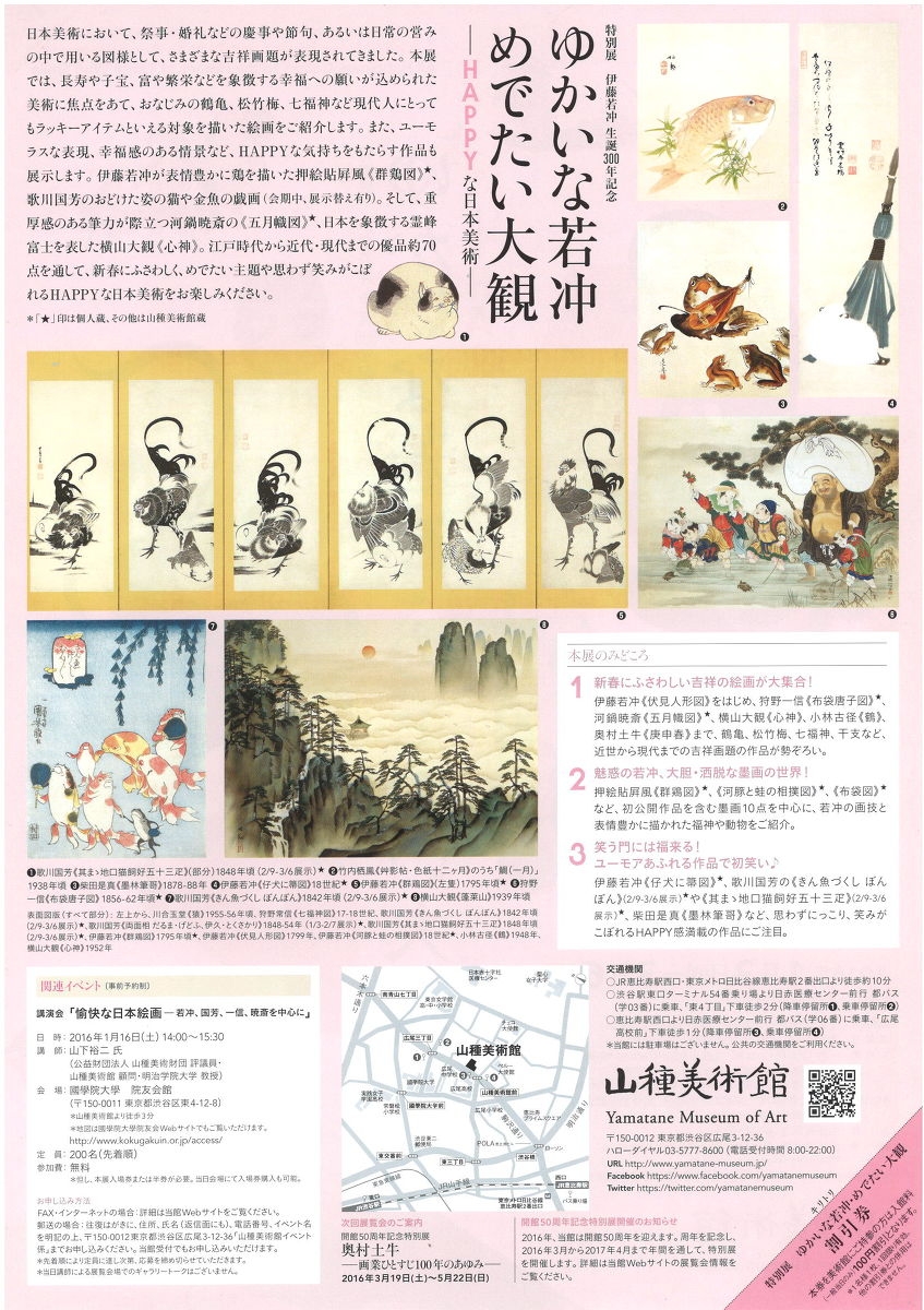 山種美術館 特別展 伊藤若冲 生誕300年記念のご案内(2015/12/28)