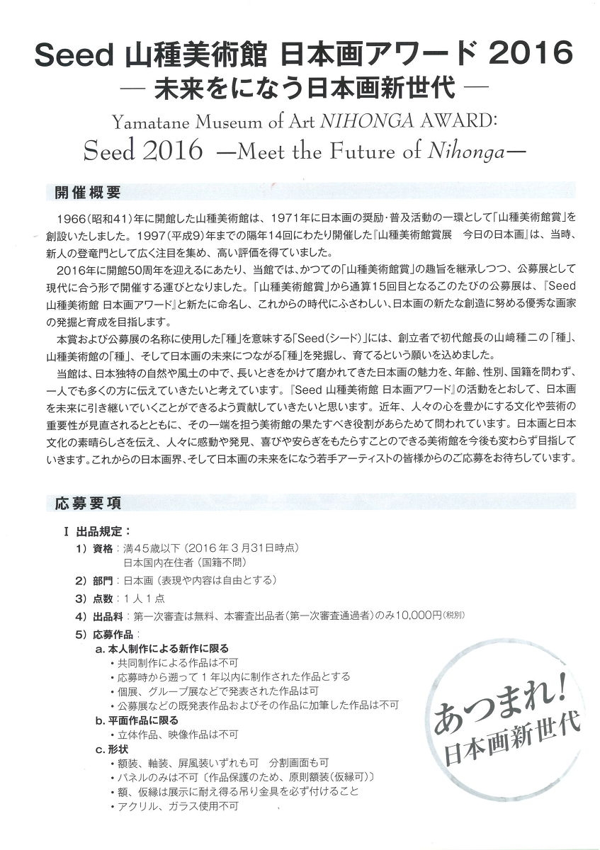 山種美術館様より 公募展 『『Seed 山種美術館 日本画アワード 2016』