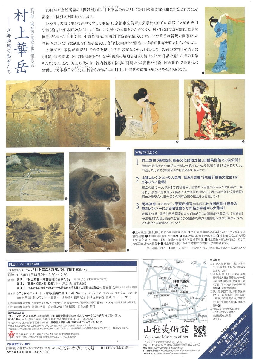 山種美術館様より、特別展 《裸婦図》 重要文化財指定記念 村上 華岳