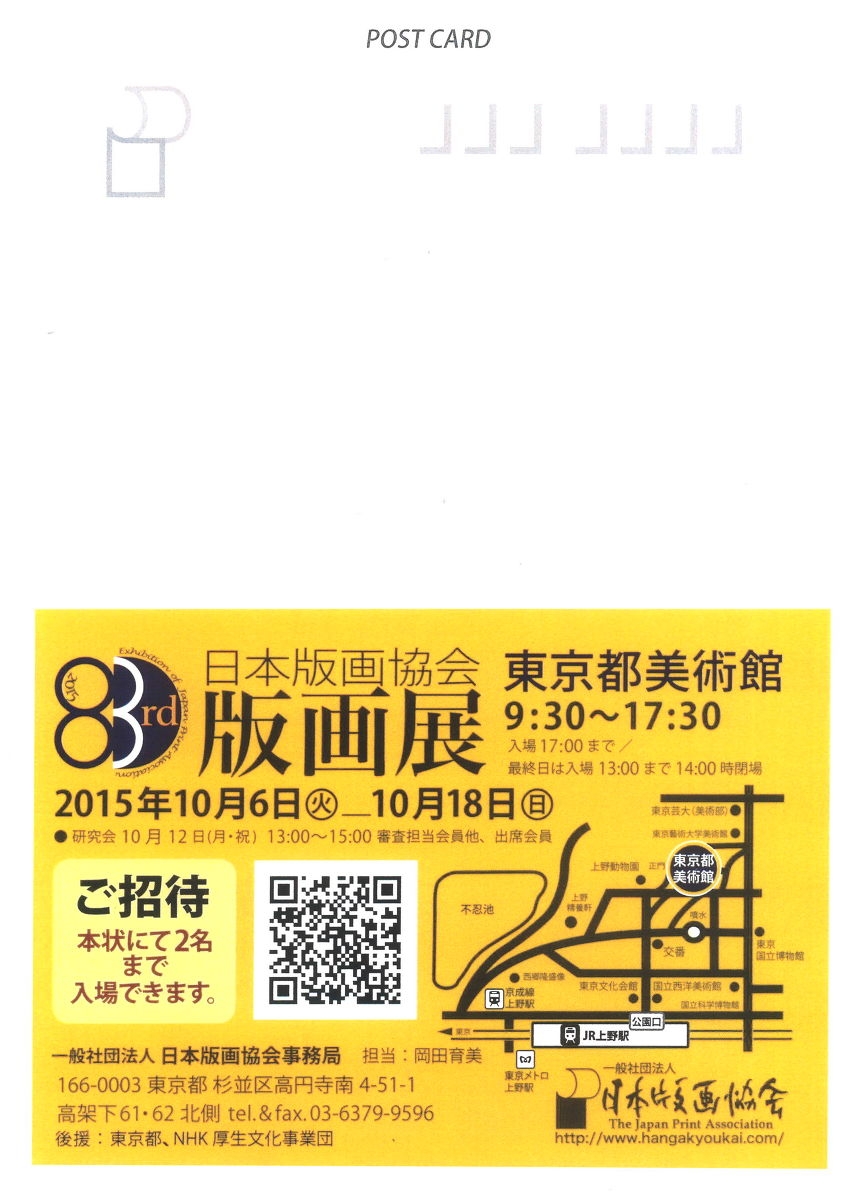 日本版画協会 83rd 版画展 のご案内(2015/09/23)