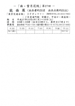ー 「面・雪月花院」 第27回 ー 能 面 展 のご案内(2015/08/31)