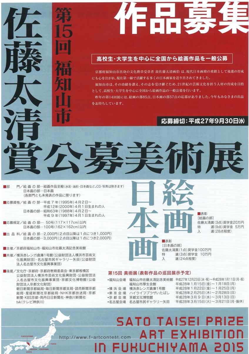 第15回 福知山市 佐藤 太清 賞 公募美術展 作品募集のご案内(2015/08/01)