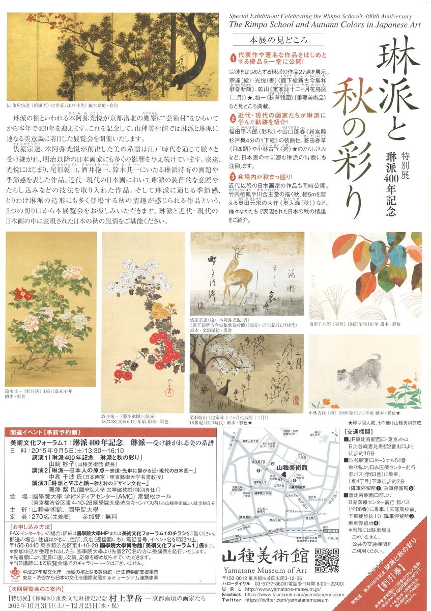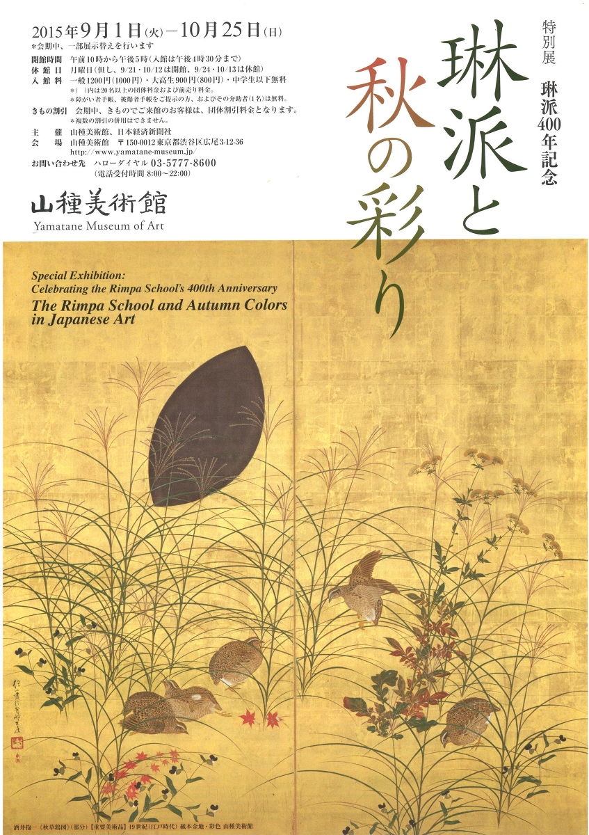 特別展 琳派400年記念 琳派と秋の彩り のご案内(2015/08/18)