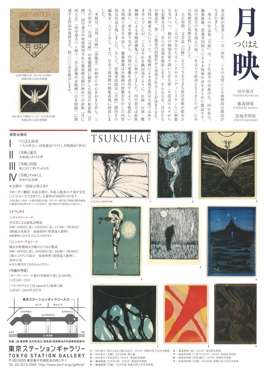 東京ステーションギャラリー様より、『月映』 田中 恭吉・藤森 静雄・恩地 孝四郎 展のご案内を頂きました。