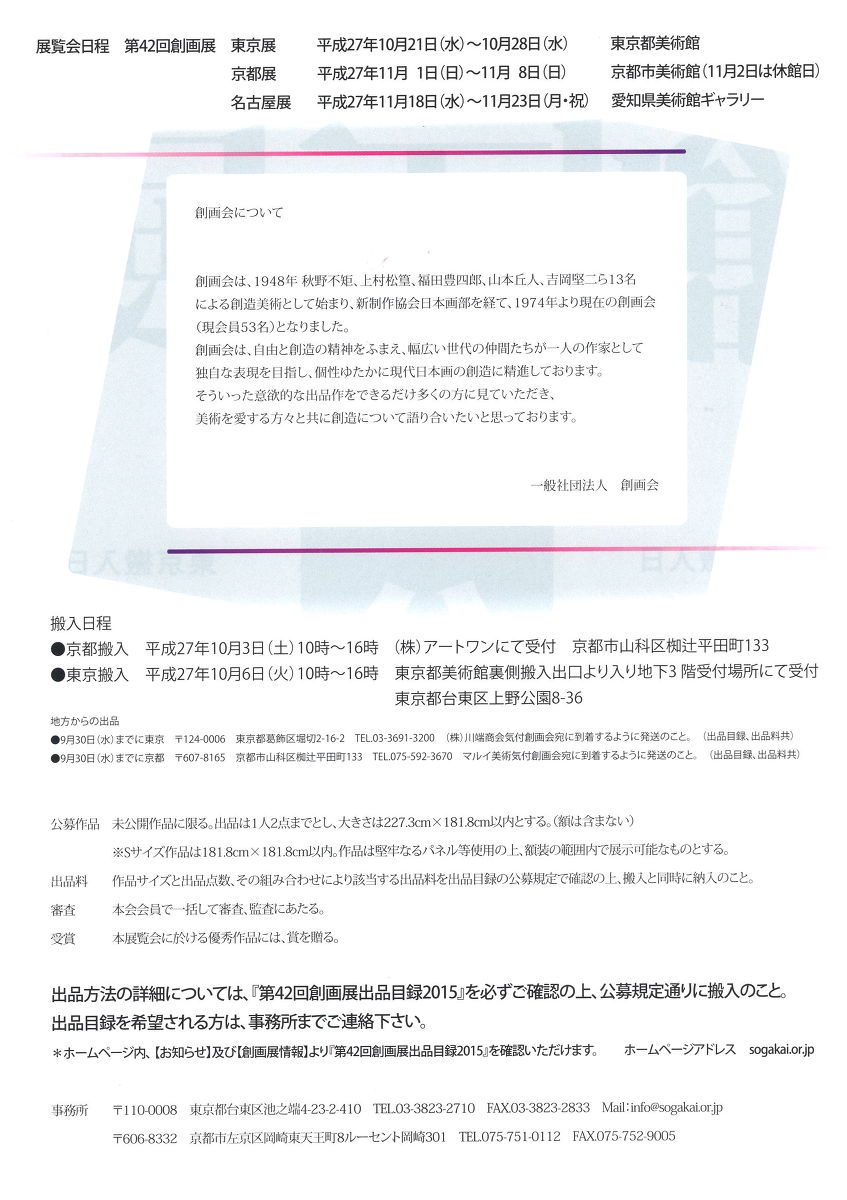 創画会様より、第42回・日本画 2015 東京展 京都展 名古屋展