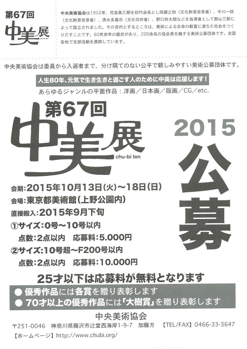 第67回 中美展 2015 公募 のご案内(2015/06/24)
